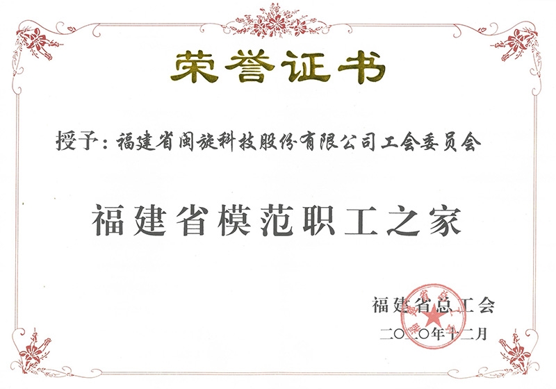 福建省模范職工之家榮譽證書