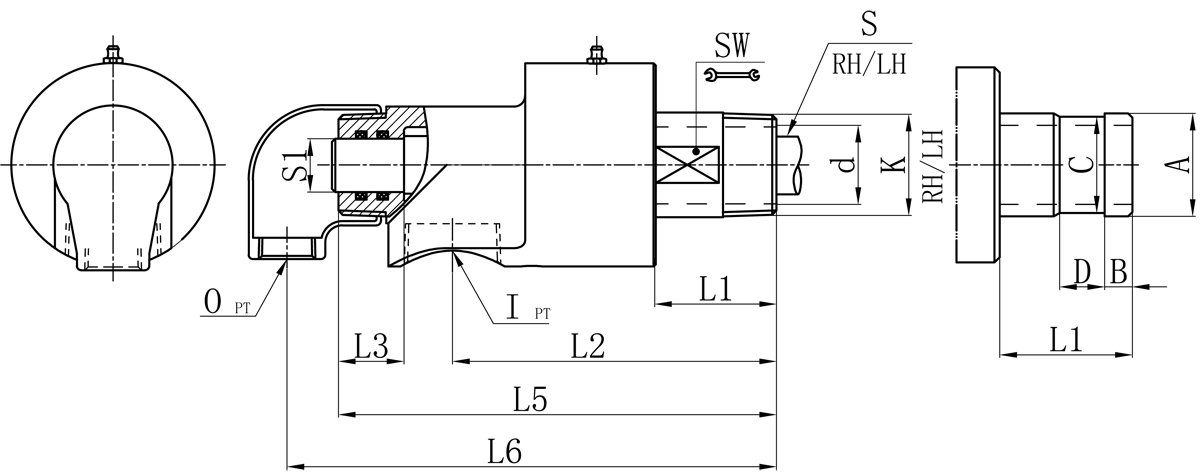 Model | K | I | O | S1 | d | L1 | L2 | L3 | L5 | L6 | SW | 法蘭式外管尺寸對照表 | |||