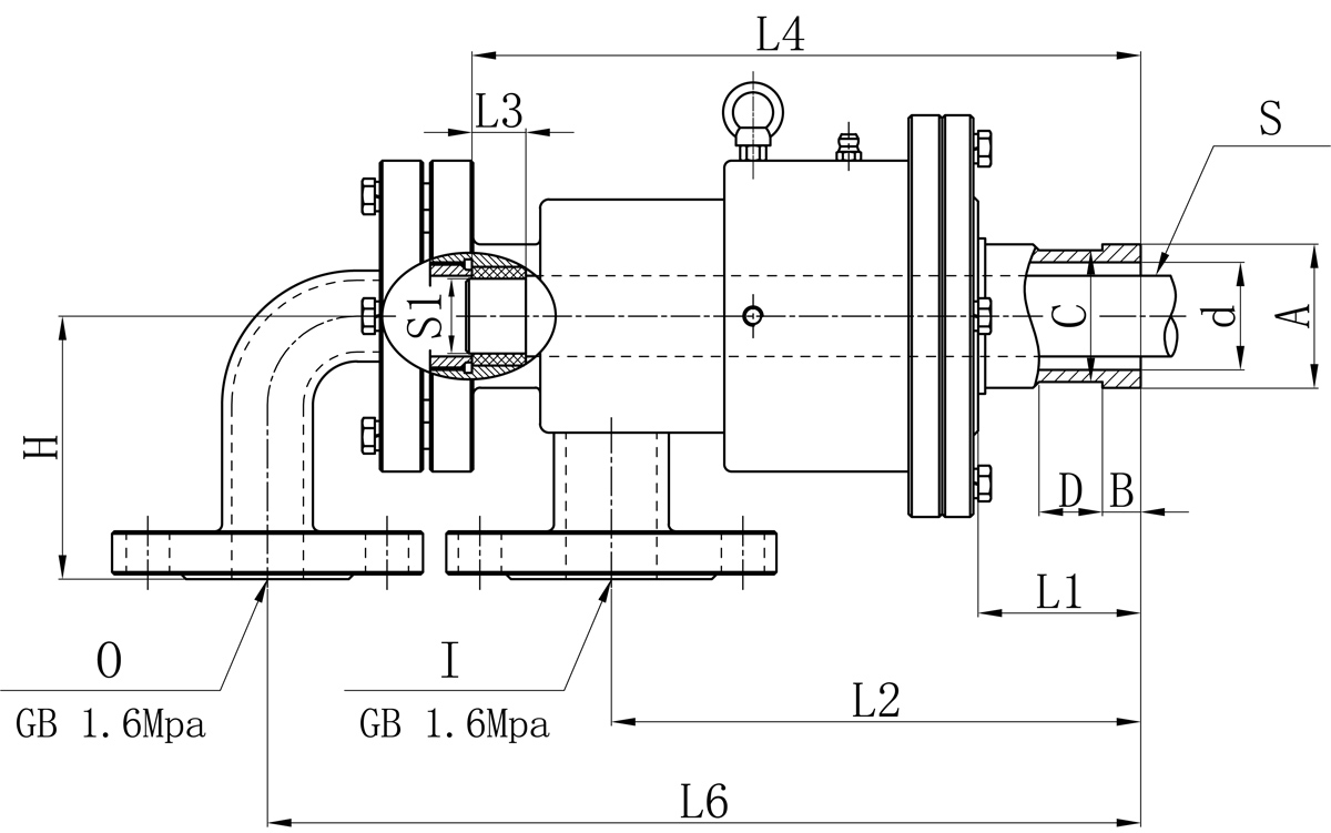 Model | I | O | S1 | d | L1 | L2 | L3 | L4 | L6 | H | 法蘭式外管尺寸對照表 | |||