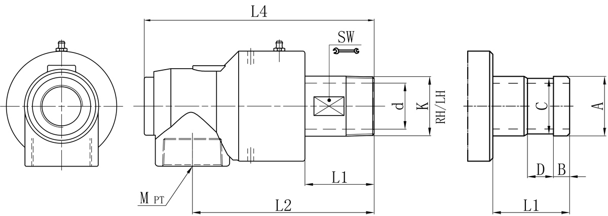 Model K I d L1 L2 L4 SW 法蘭式外管尺寸對照表